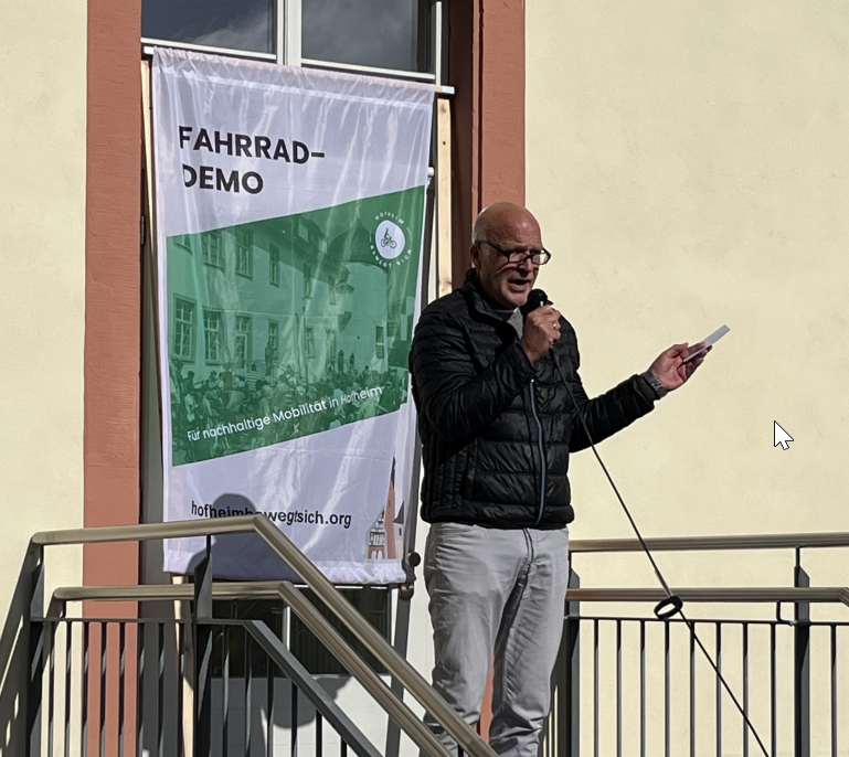 Daniel Philipp, seit Anfang 2024 erste Stadtrat von Hofheim hatte vor genaue einem Jahr eine Rede bei unserer Demo gehalten und seine Ideen vorgestellt.